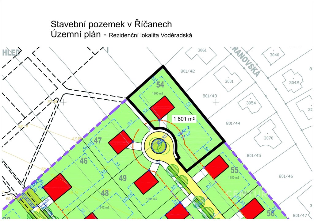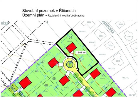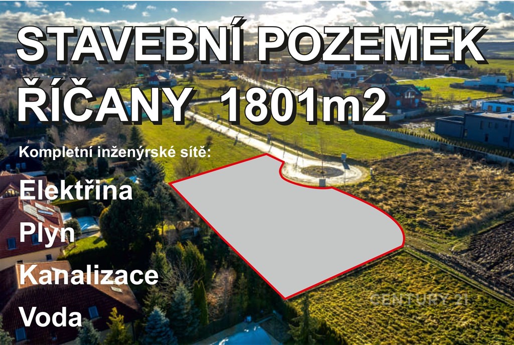 Prodej stavebního pozemku 1 801 m2 - Říčany u Prahy, ul. Voděradská Nabízíme exkluzivní stavební pozemek pro opravdu náročné klienty v nové rezidenční lokalitě Voděradská v Říčanech u Prahy. Pozemek má veškeré inženýrské sítě - voda, kanalizace (smluvně zajištěná dodávka vody od vodárenské společnosti), elektřina a plyn. Je připraven k okamžité výstavbě. Základní informace Výměra pozemku: 1 801 m2 Zastavitelnost: 20 % (až 360 m2 zastavěné plochy) Určeno pro samostatně stojící rodinné domy (o max. 2 bytových jednotkách) Lokalita Rezidenční oblast Voděradská se nachází v klidné části Říčan, s kompletní infrastrukturou - asfaltové komunikace, chodníky, veřejné osvětlení a zeleň. Centrum Říčan je vzdáleno cca 20 minut pěšky, do centra Prahy je to pouhých 20 km. Říčany jsou dlouhodobě hodnoceny jako město s nejvyšší kvalitou života v ČR. Výhody pozemku Kompletně zasíťováno Možnost okamžité výstavby Klidná lokalita s dobrou dostupností Prahy Prémiová rezidenční čtvrť Doporučujeme pro klienty, kteří hledají klidné a komfortní bydlení v blízkosti Prahy. Kontaktujte makléře pro více informací nebo domluvení prohlídky.