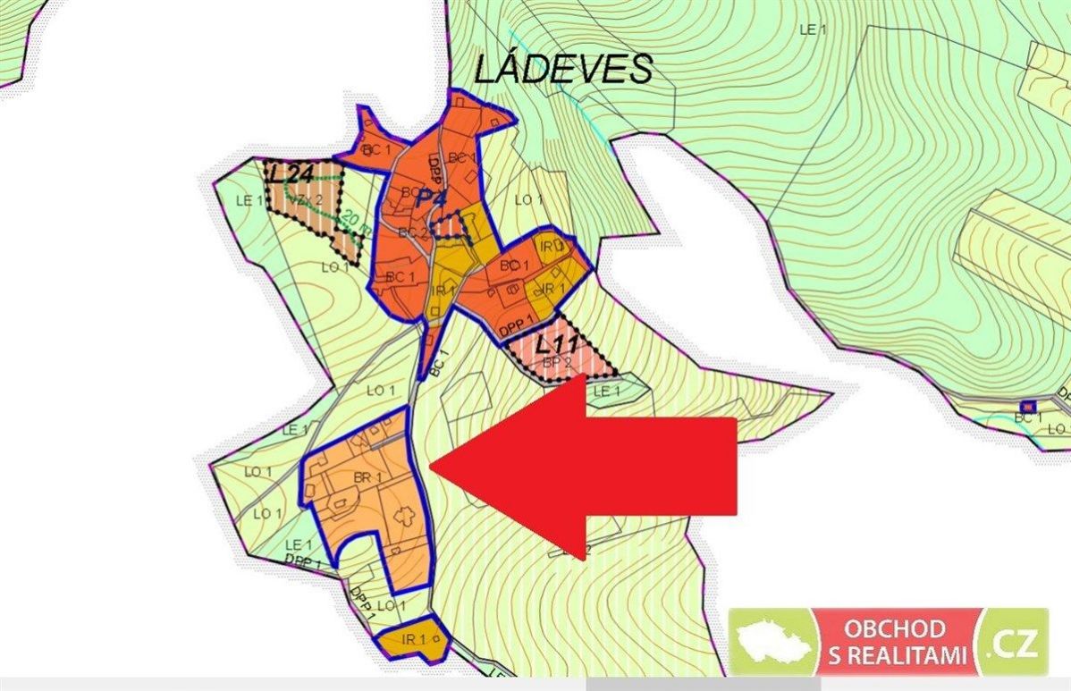 Předmětem nabídky je pozemek parc. č. 204/31 pro k.ú. Ládví, evidovaná výměra pozemku je 1.034 m2. Pozemek se nachází v centru osady Ládeves, jenž je obklopena lesy, případně pastvinami pro koně. Jedná se o jedno z nejvýše položených míst v okolí Kamenice, tedy 439 metrů nad mořem. Správu vykonáná obec Kamenice, nejbližší zastávka BUSu směr Praha / Benešov je v Ládví. Ládeves je s Ládvím spojena novou asfaltovou komunikací. Pozemek je dle územního plánu veden v území nazvaném BR (bydlení a rekreace). Přípustná je výstavba rodinného domu s jednou bytovou jednotkou. K pozemku tak byla v minulosti zpracována studie na zástavbu přízemním rodinným domem 4+KK s garáží (půdorysné řešení Vám můžeme zaslat k nahlédnutí). Na hranici pozemku je nová přípojka elektřiny. Odpad je nutné řešit čistírnou odpadních vod, zdroj vody je nutné řešit vrtanou studnou (studny v okolí mají hloubku 20 až 30 metrů), též lze uvažovat o připojení na vodovodní řad. Jedná se o klidné místo pro trvalé bydlení nebo rekreaci, poloha pozemku je mimo toky aut nebo lidí, pohyb jen místních obyvatel. <a href="https://www.eurobydleni.cz/rekreacni-objekty/chalupy/praha-vychod/obec-kamenice/prodej/"><strong>Prodej chalupy Kamenice</strong></a>