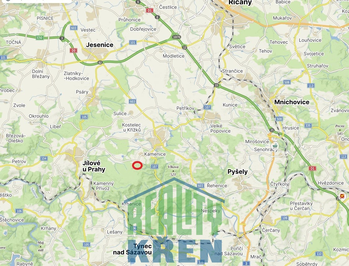 Prodej jedinečného pozemku pro stavbu RD, Štiřín Kamenice u Prahy, 1416 m2