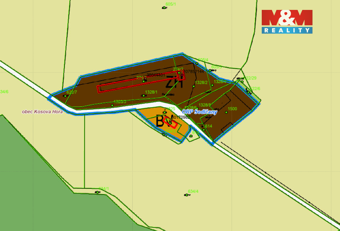 Nabízíme k prodeji soubor tří pozemků s celkovou výměrou 2362 m2 v katastrálním území Kosova Hora, který je vhodný ke komerčním účelům, zejména potom k vybudování skladovacích hal, velký potenciál totiž nabízí budoucí dálnice D3, kde plánovaný sjezd bude "Voračice" a vzdálenost od sjezdu k pozemkům bude pouhých 6 kilometrů. Na jednom z pozemků se nachází stavba bez čísla evidenčního, ani popisného, na katastrálním úřadě vedená jako "jiná stavba". Maximální zastavěná plocha pozemku činí 50%, inženýrské sítě dosud nejsou zavedeny, nicméně trafostanice je vzdálena cca 100 m. Příjezd je zajištěn po obecní komunikace a mezi obecní cestou a pozemkem je řešeno věcným břemenem chůze a jízdy. Více informací získáte u makléře.
